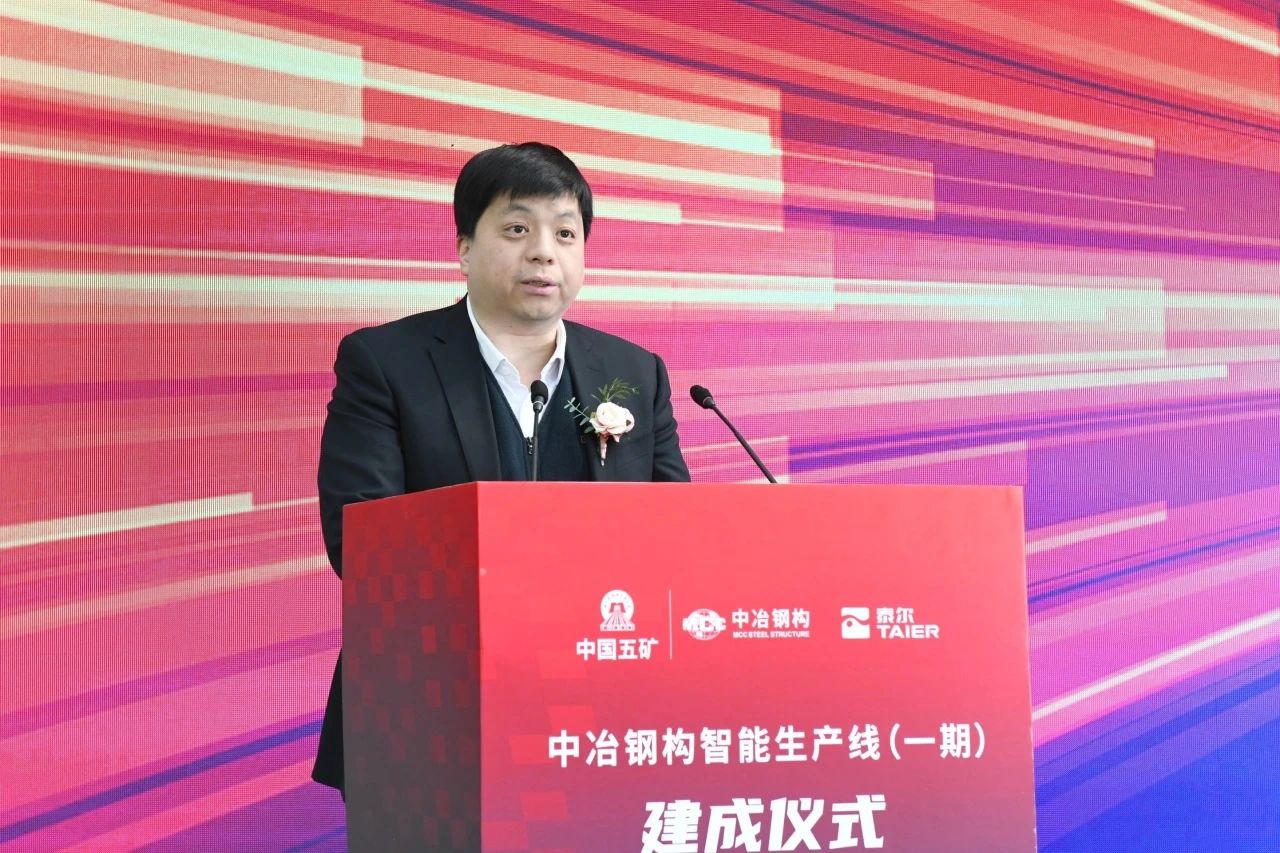 ? ? 邰正彪首先對中冶鋼構的高度信任和支持表示感謝,表示作為本項目的設計制造單位,滿懷感激、感恩和信心。泰爾因裝備而興,自創立之初,泰爾的使命就是替代進口,實現“中國產品中國造”。在國家“2035”和“2049”戰略目標的指引下,泰爾重工不斷守正創新,以科技創新和裝備制造業為重點,圍繞船舶、鋼構、核電、工程機械、新能源等關鍵領域開展聯合技術研發和產品攻關。目標是通過激光技術+智能技術,實現工藝再造、流程再造,實現綠色、環保、安全和數字化、智能化制造,全面提高生產效率,打造新的生產關系,賦能中國制造高質量發展,打造新質生產力。
