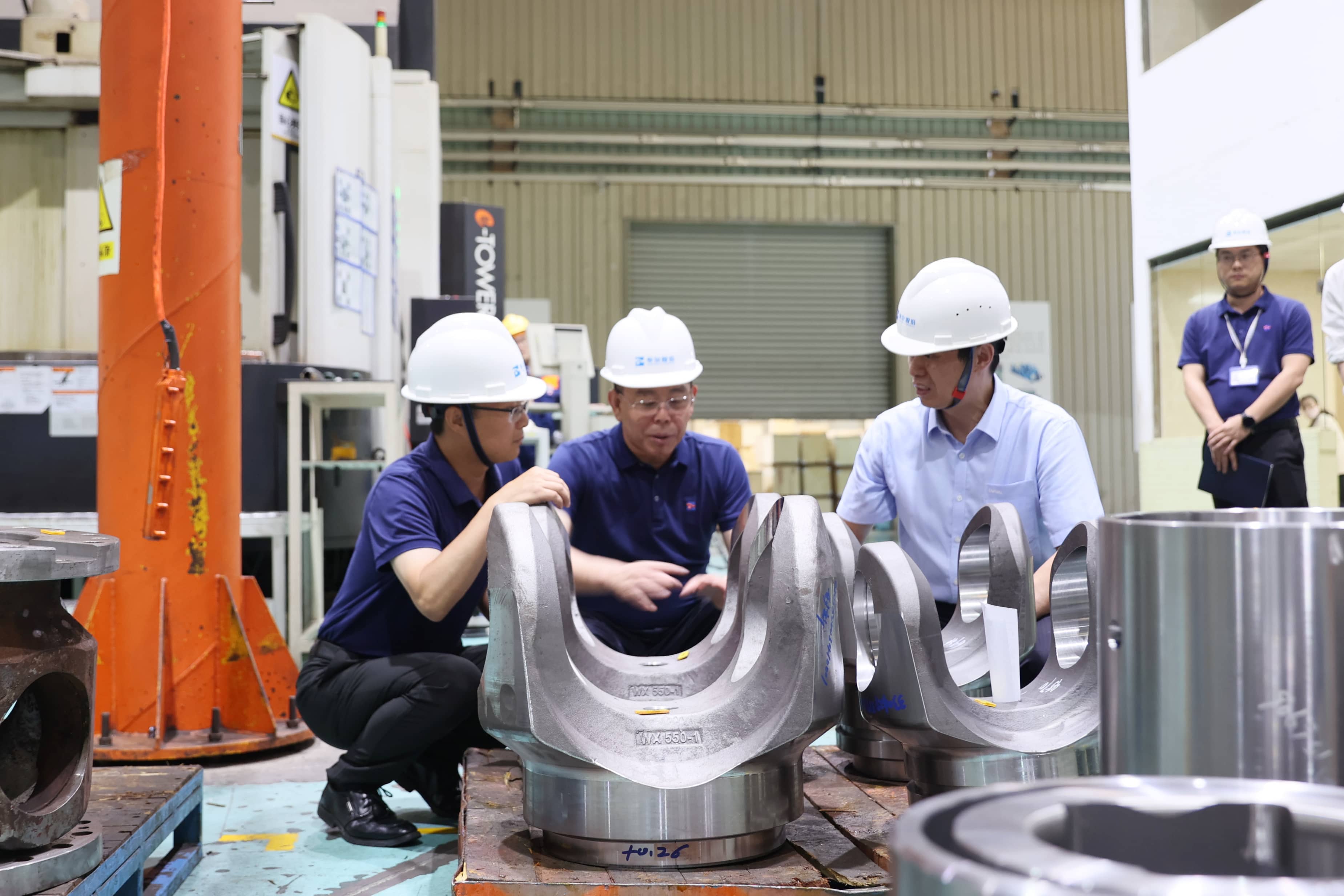 ? ? ? 在新區車間,歐冶工業品黨委書記、董事長張青詳細了解了萬向軸的叉頭零件加工工藝和企業的質量控制,查看了高精端機床設備,并對泰爾的產品加工工藝和智能制造裝備前景給予肯定。