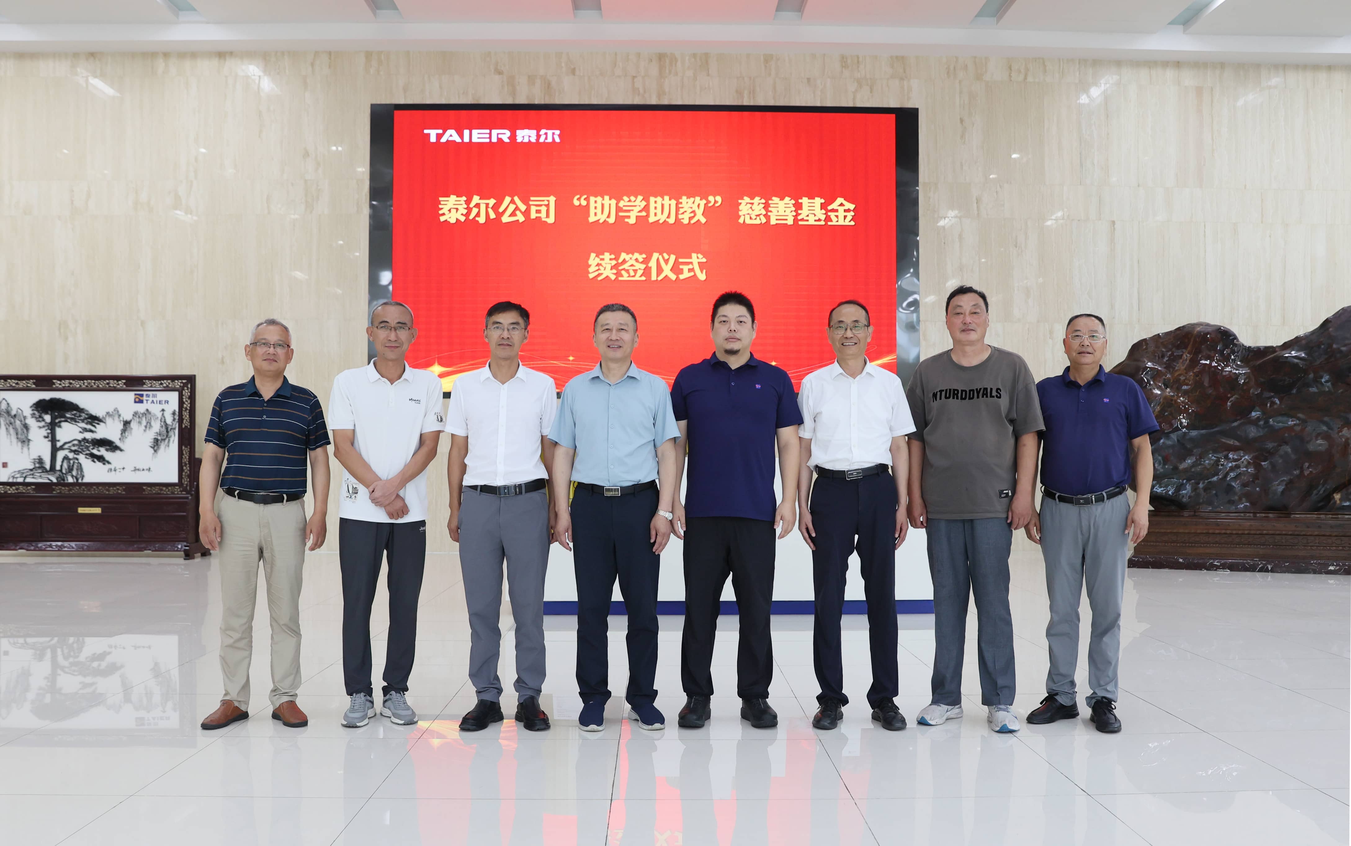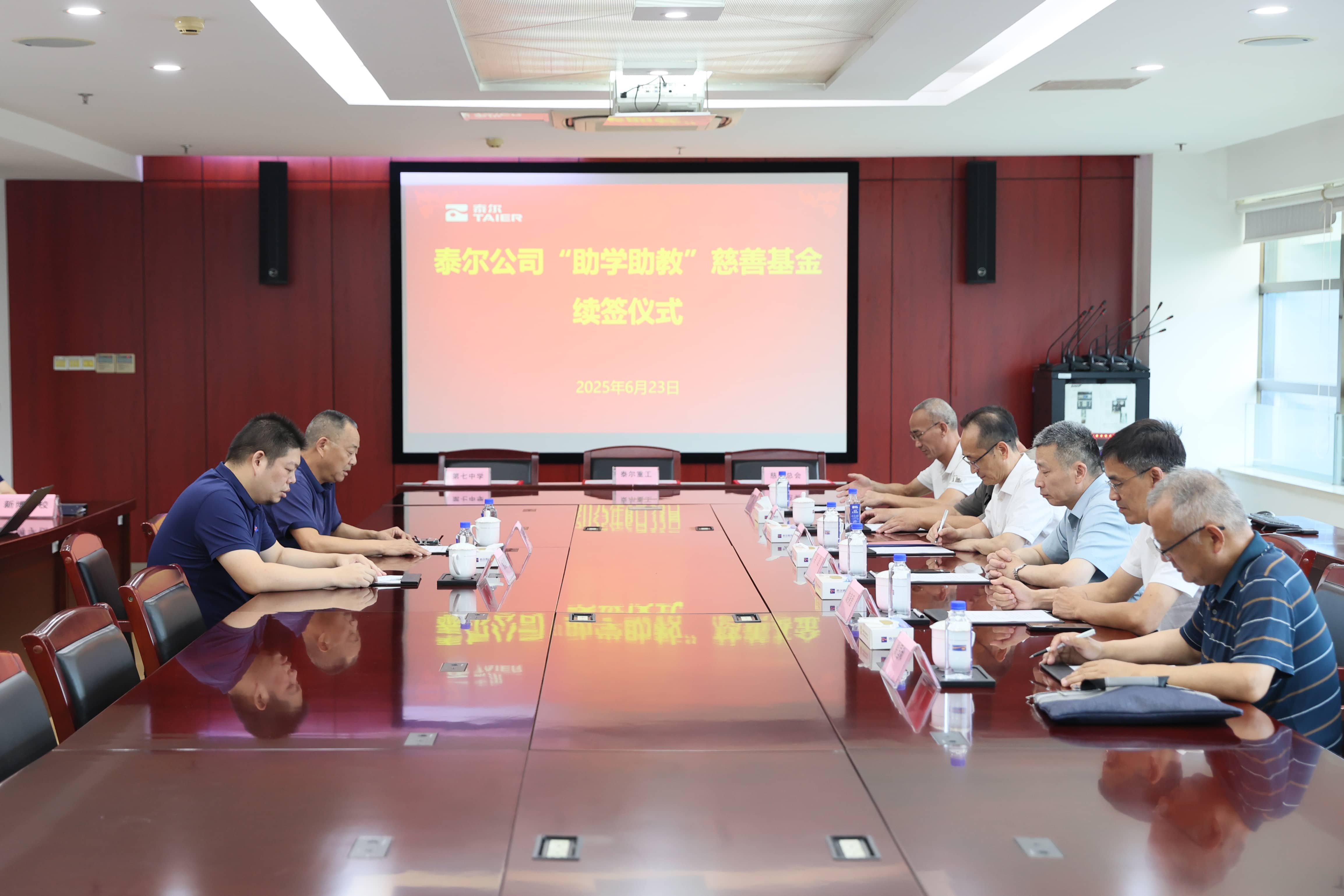 6月23日,泰爾助學助教慈善基金續簽儀式,在行政樓二樓股東會議室舉行。市慈善總會副會長吳雄、市慈善總會秘書長吳鴿鳴、市第七中學黨支部書記兼校長慶曉、市新博中心學校黨支部書記兼校長陶身愛、泰爾黨委書記、董事長邰紫鵬、泰爾黨群辦主任韋長友等出席續簽儀式。