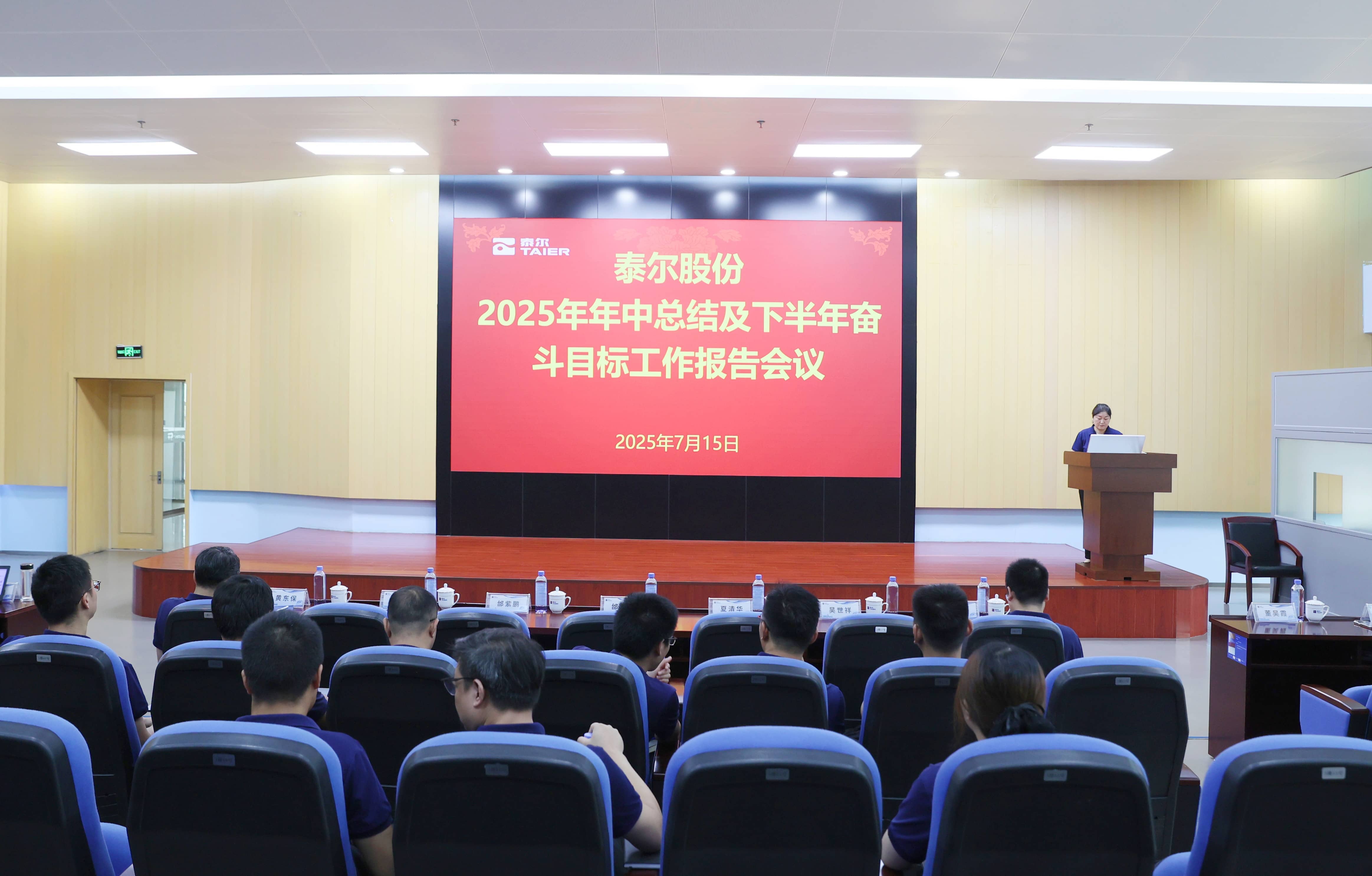 7月15日,泰爾召開2025年年中總結及下半年目標工作報告會議。全面總結了上半年各項工作進展情況,深入分析當前市場形勢,并錨定目標部署下半年工作舉措,全力以赴沖刺年度指標。會議由泰爾副總經理馮春蘭主持,公司中高層、各項目負責人及核心骨干參會。